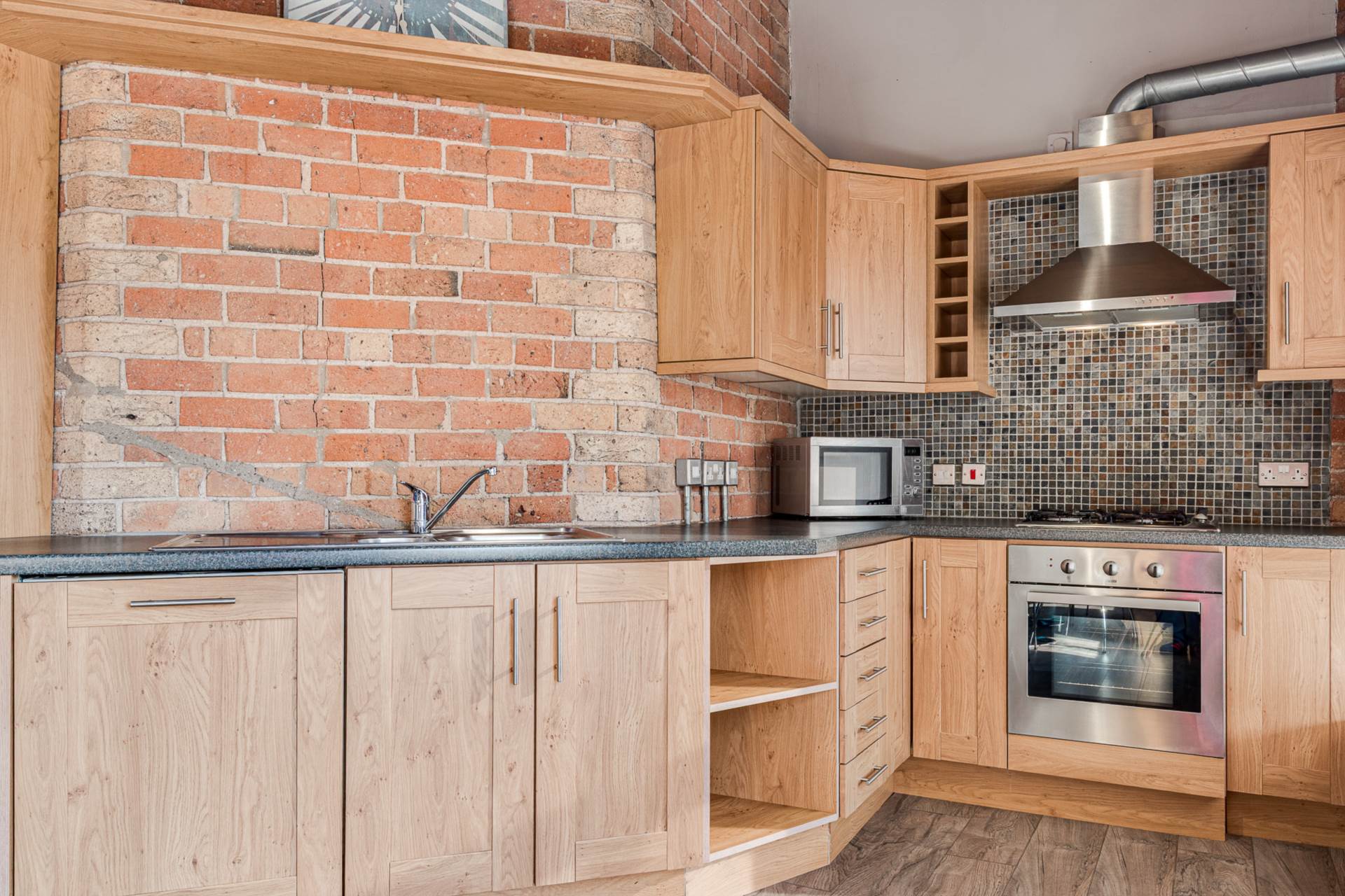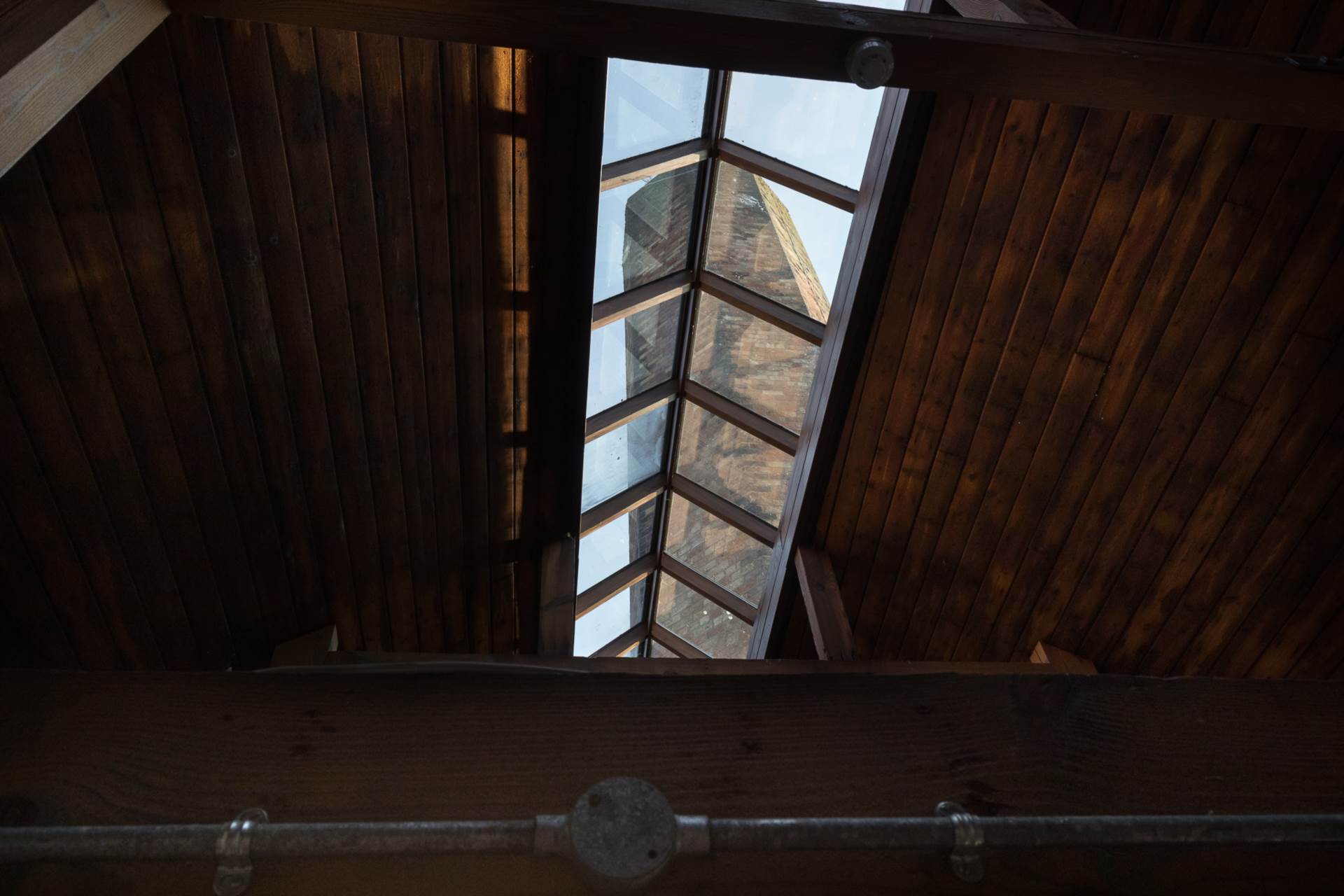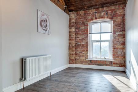 Exposed brick wall. Timber clad ceiling. Original mill chimney feature.