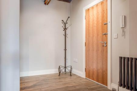 Exposed timber and beamed ceiling. Intercom lock release security system. Cloaks/storage cupboard.