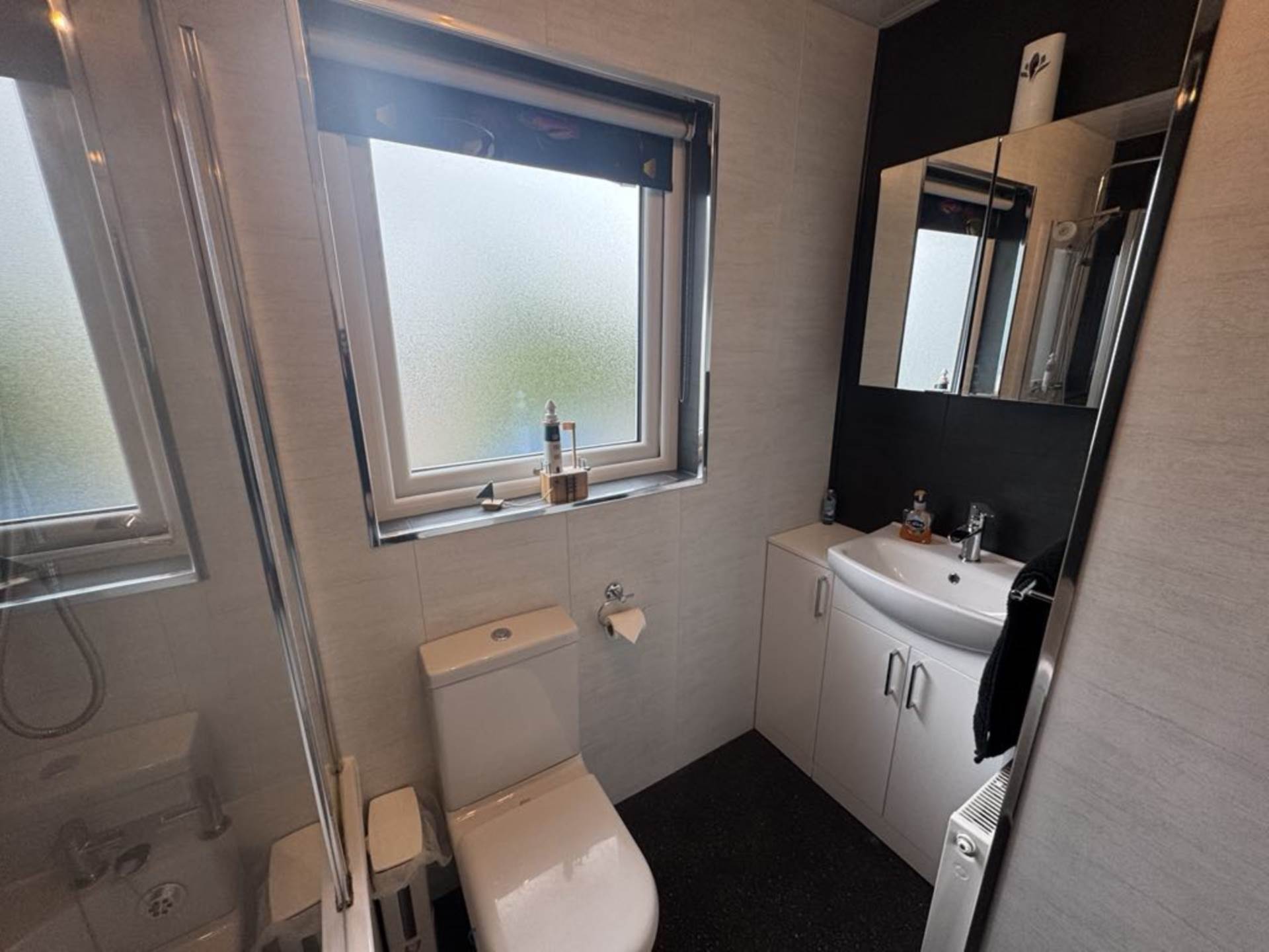 - Recently installed family bathroom with white suite