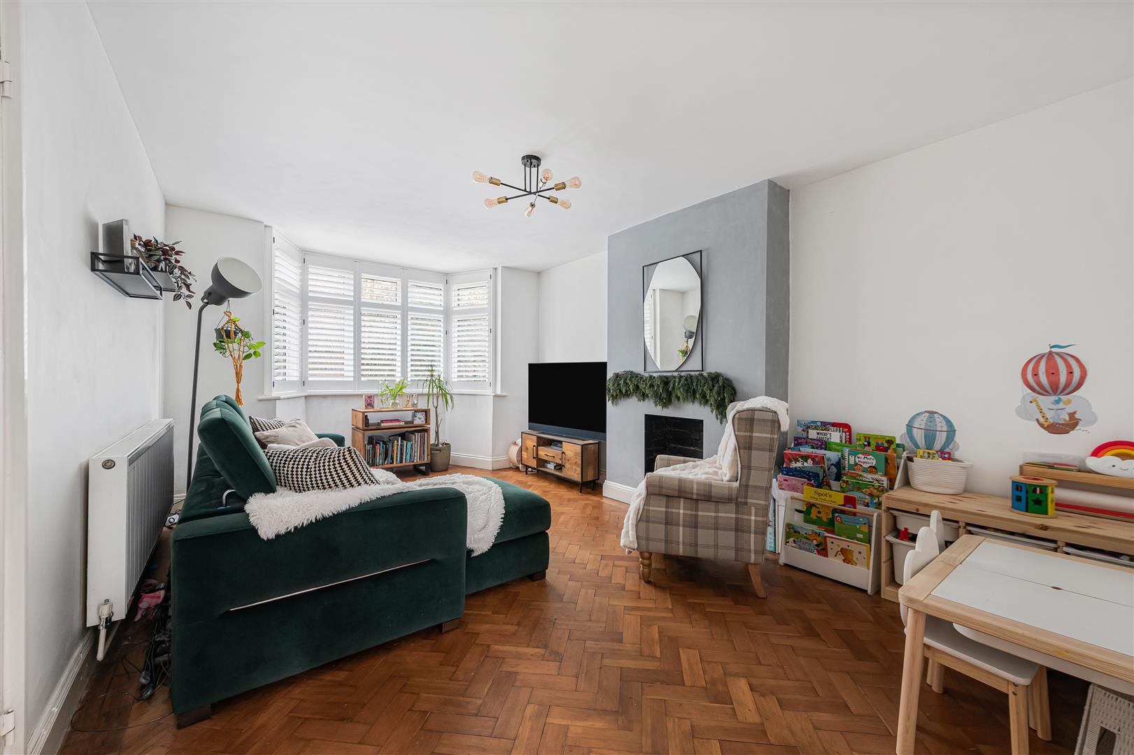 - Cozy lounge with parquet flooring and bay window