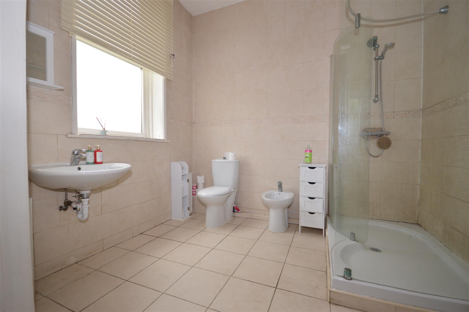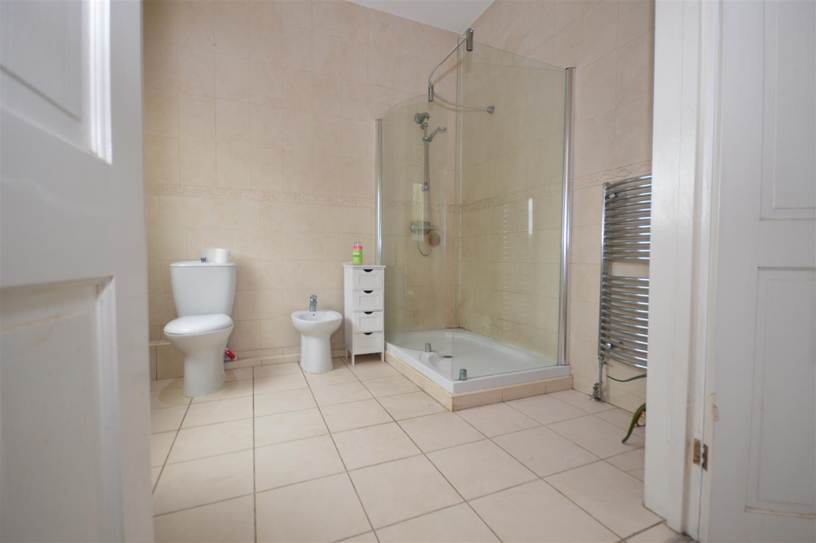 En-Suite - Shower, bidet, wash hand basin, extractor fan, radiator and window to the front of the property.