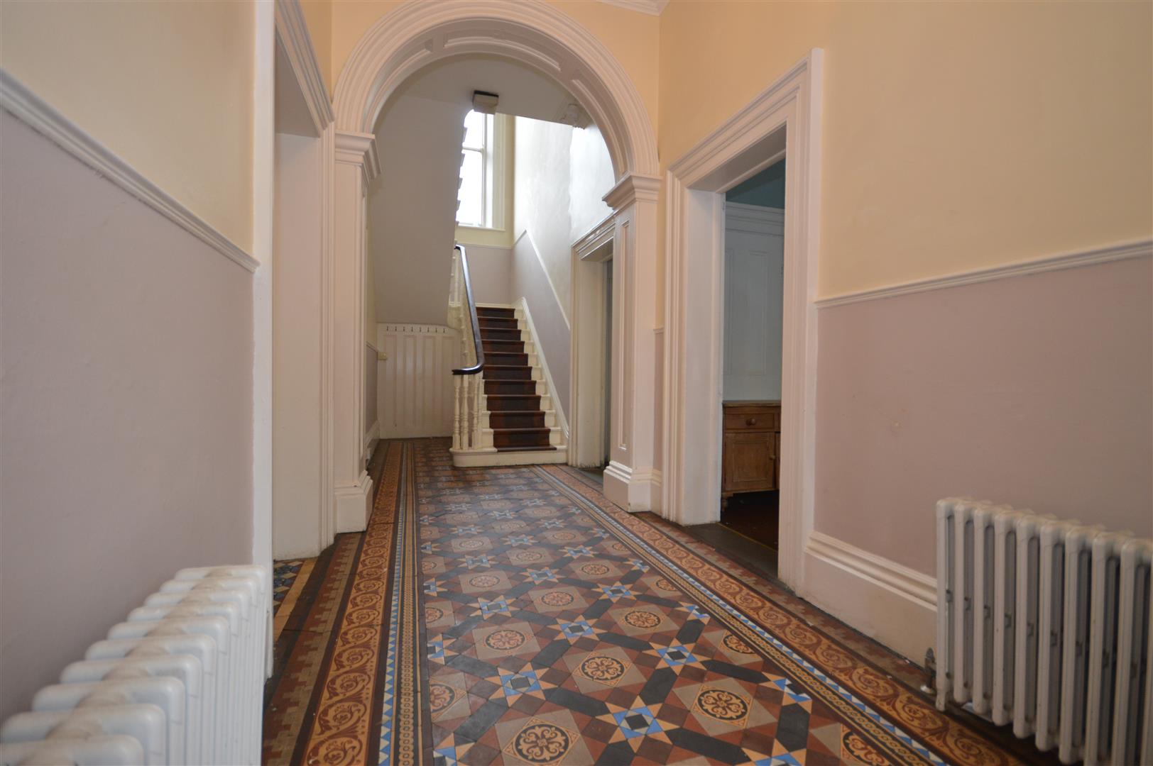 Entrance Hall - Double doors lead you into a period entrance hall with tiled flooring, central heating radiators and access to all ground floor accommodation.
