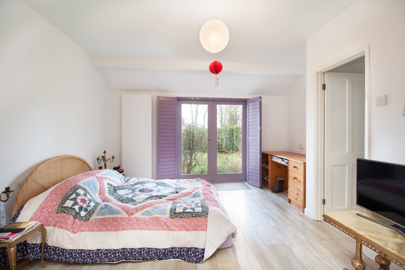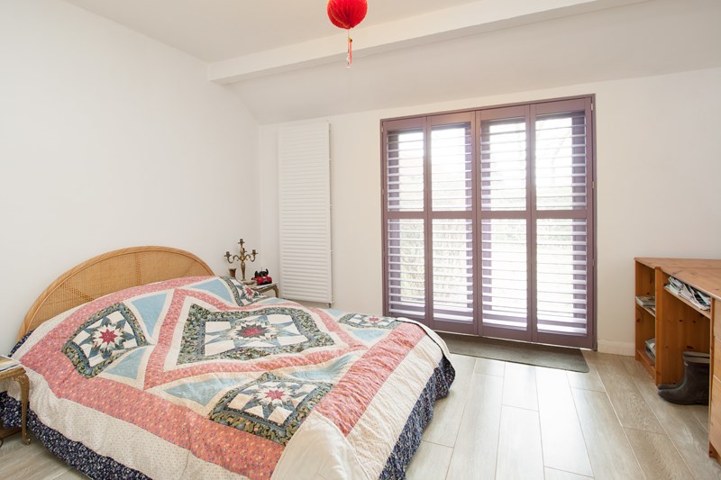 The property which has painted and rendered elevations is characterised by bespoke timber shutters that are fitted to quality double glazed windows and doors with timber surrounds throughout.