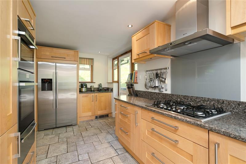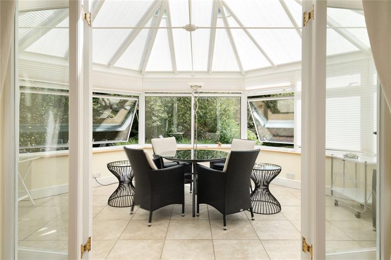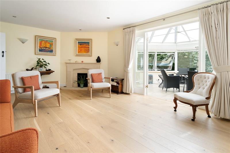 Entering the property, the spacious Entrance Hall with tiled flooring, dog leg staircase to the first floor, as well as a coats cupboard and Cloakroom off. The Lounge boasts underfloor heating, under the engineered oak flooring, Portland stone open fireplace with double doors to the Conservatory, with fine views of the grounds surrounding, underfloor heating and fitted blinds. The formal Dining Room has views via a bay window to the gardens and a door to the fully fitted Kitchen/breakfast room, a triple aspect room with a vaulted ceiling Conservatory end for informal dining. Fitted with a range of pine 'Alliance Burbridge' kitchen units under composite stone worktop with a full range of built in 'Neff' appliances to include Americian style fridge/freezer with pull out adjacent larder cupboards, oven with combination oven over and warming drawer below, 5 burner gas hob with extractor unit above, dishwasher, recycling bins, coffee station and Quooker tap, There is a door to the side garden and double doors from the Conservatory end to a sunny South facing sun trap. A separate Utility room with plumbing for washing machine and tumble dryer with door to garden and from the Entrance hall, double doors to a spacious double aspect Study/Family room complete the downstairs accommodation.