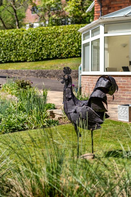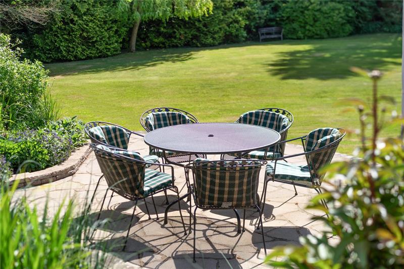 With grounds extending to 0.8 acres, a beautiful South facing plot, being completely secluded with a large expance of lawns, bordered by mature trees and shrubs. Sun trap patio area approached via the Conservatory and Breakfast room. Large garden workshop with power and light. Ample off road parking and turning area with Double garage with remote up and over door, power and light. Additional Single garage approached via double gates from Southfields Road.