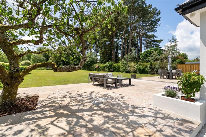 STEP OUTSIDE - Tregeare, positioned centrally within its level grounds of 0.6 of an acre, all being professionaly landscaped with extentive level lawns, a large sandstone patio along with mature trees and shrubs. Side door from the kitchen to a decked patio area.