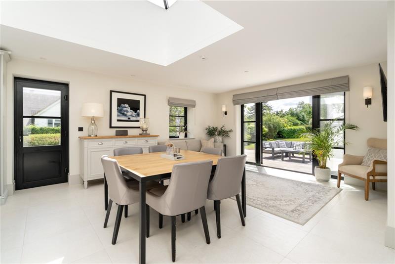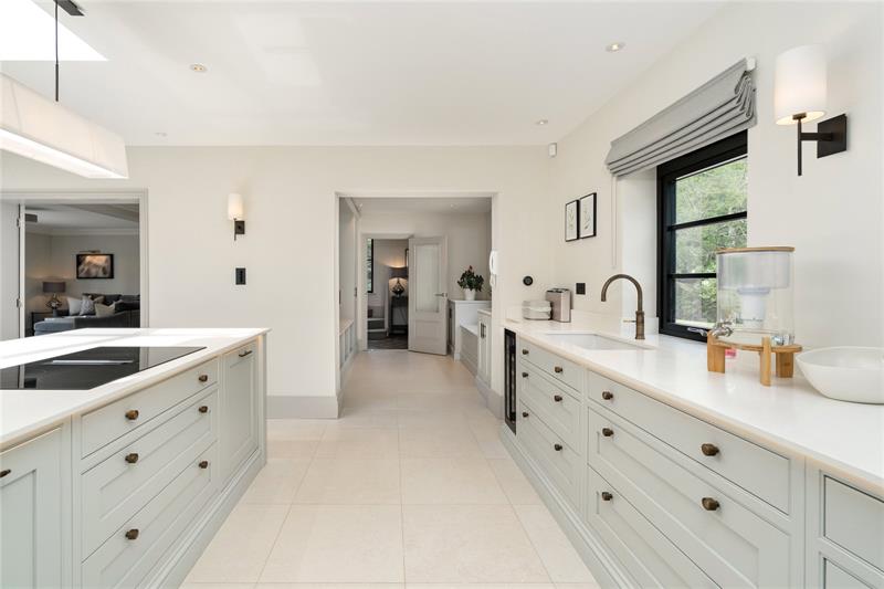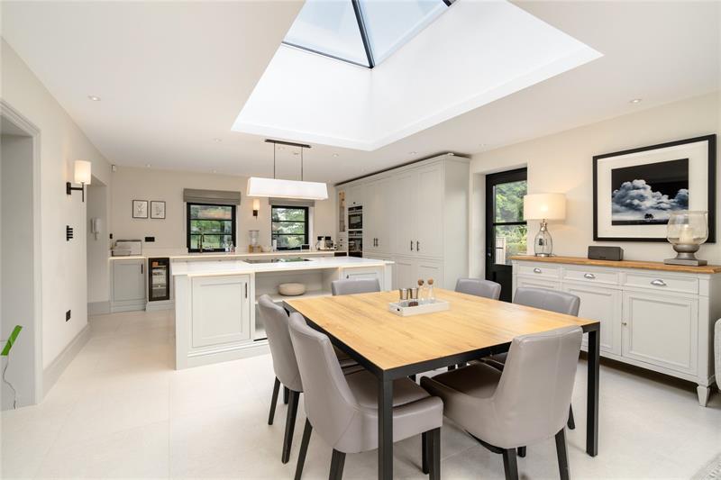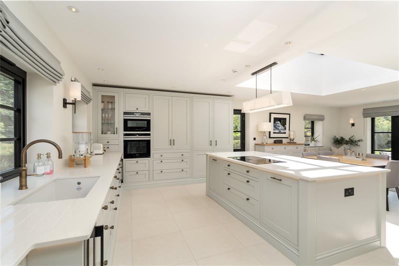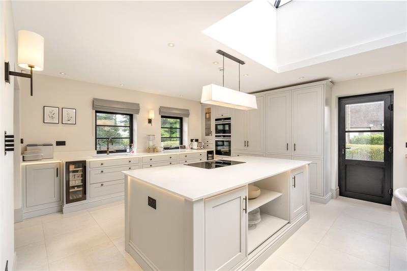 STEP INSIDE - Internally, the current owners have extended the magnificent kitchen/family/dining room, adding a feature glazed roof lantern with colour change LED lighting, bespoke units with under counter LED lighting, and island unit, high end appliances to include 2 wine fridges, dishwasher, steam oven and combi oven, induction hob with built in central extractor, larder fridge and larder freezer with ice maker, stone worktops Quooker boiling water tap and filter, Shaws handmade sink and underfloor heating under Amtico LVT herringbone flooring.