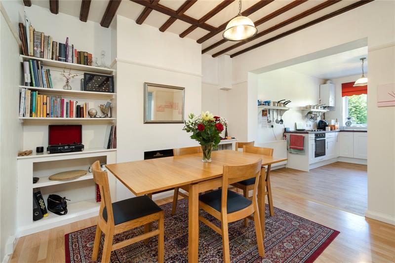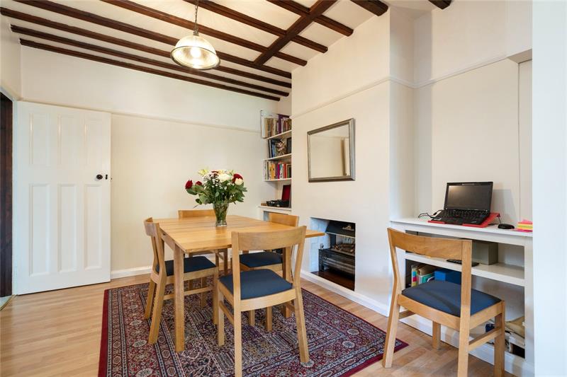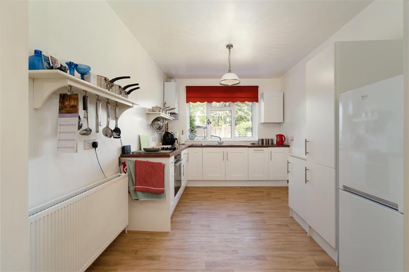Homeleigh is approached via a long front garden, being set well back from the road and providing 2/3 off road parking spaces. The pretty front garden is well stocked with flower beds and shrubs with a pathway leading to the front door. The Lounge overlooks the front garden and has beams to the ceiling and an original fireplace surround with gas fire. The dining room has fitted shelving to each side of the fireplace, sitted with an electric fire but with the chimney still in place if an open fire is required. The kitchen is open plan to the dining room and is fitted with a range of white fronted kitchen units incorporating oven, hob, dishwasher and space for fridge/freezer. A door from the kitchen leads to a Utility Room with plumbing for washing machine and tumble dryer and with a useful downstairs cloakroom off and a door to the downstairs bedroom or family room which has doors to the rear garden. (This room is separated from the Kitchen by a stud wall, so could easily be opened up to create a larger kitchen/family room).