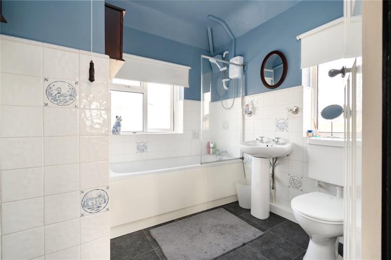 Rising to the first floor, the first floor landing window offers delightful views towards Botley Hill and The Glebe. There are three bedrooms, two being double and a third single room, all sharing the bathroom fitted with a Triton over bath shower, wc and wash basin.