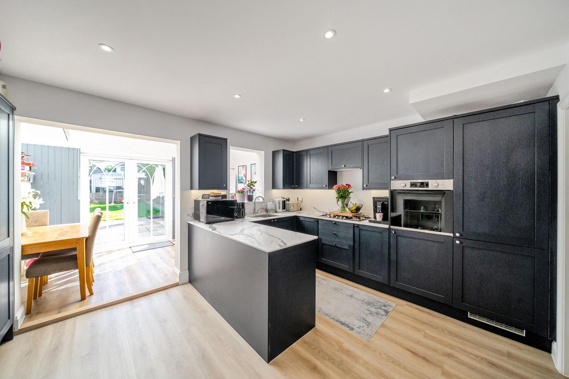 - Striking open-plan hub of the home incorporating kitchen, dining and lounge areas with doors opening onto the rear garden