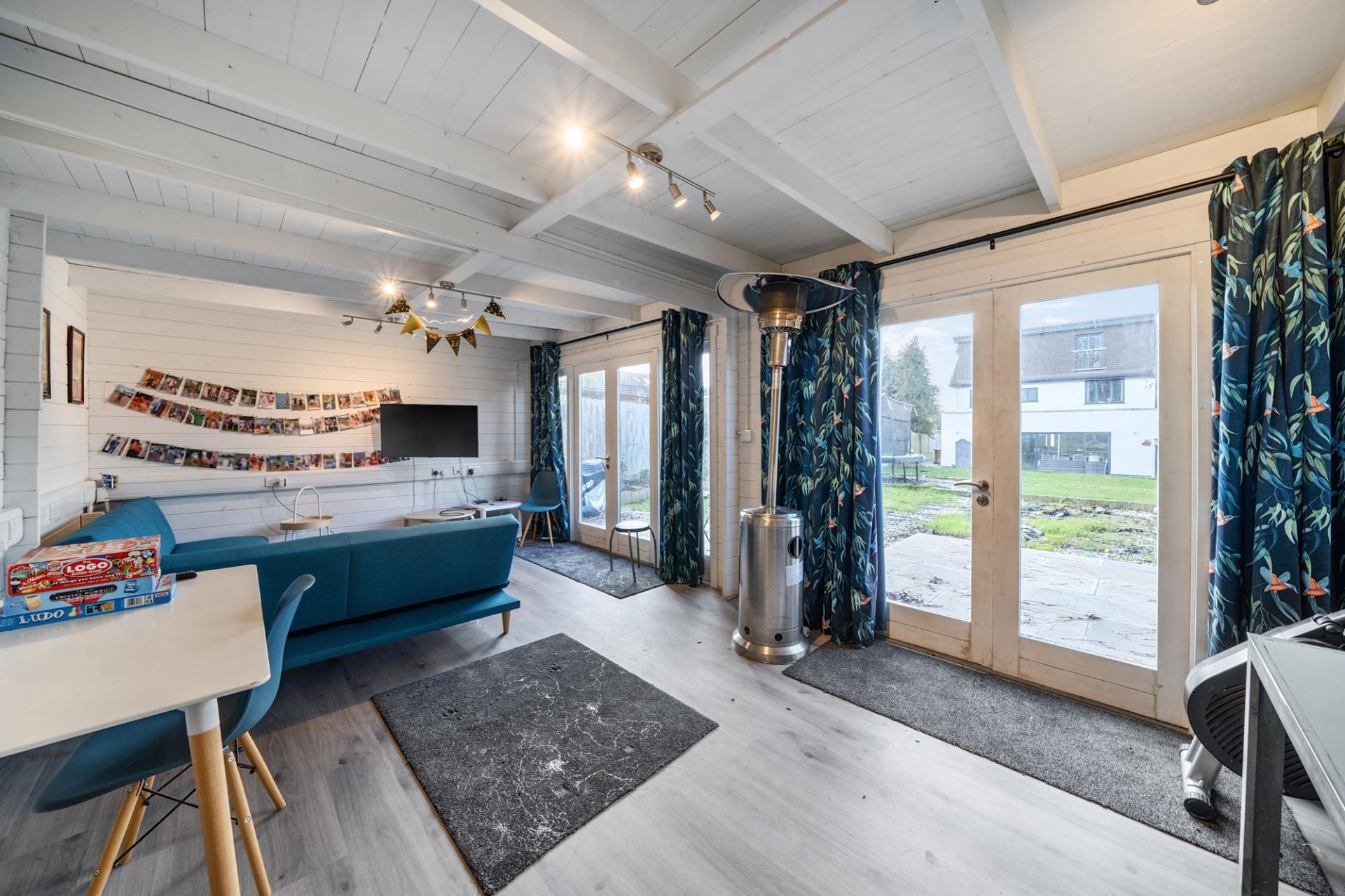 - Substantial garden with patio space and Cabin