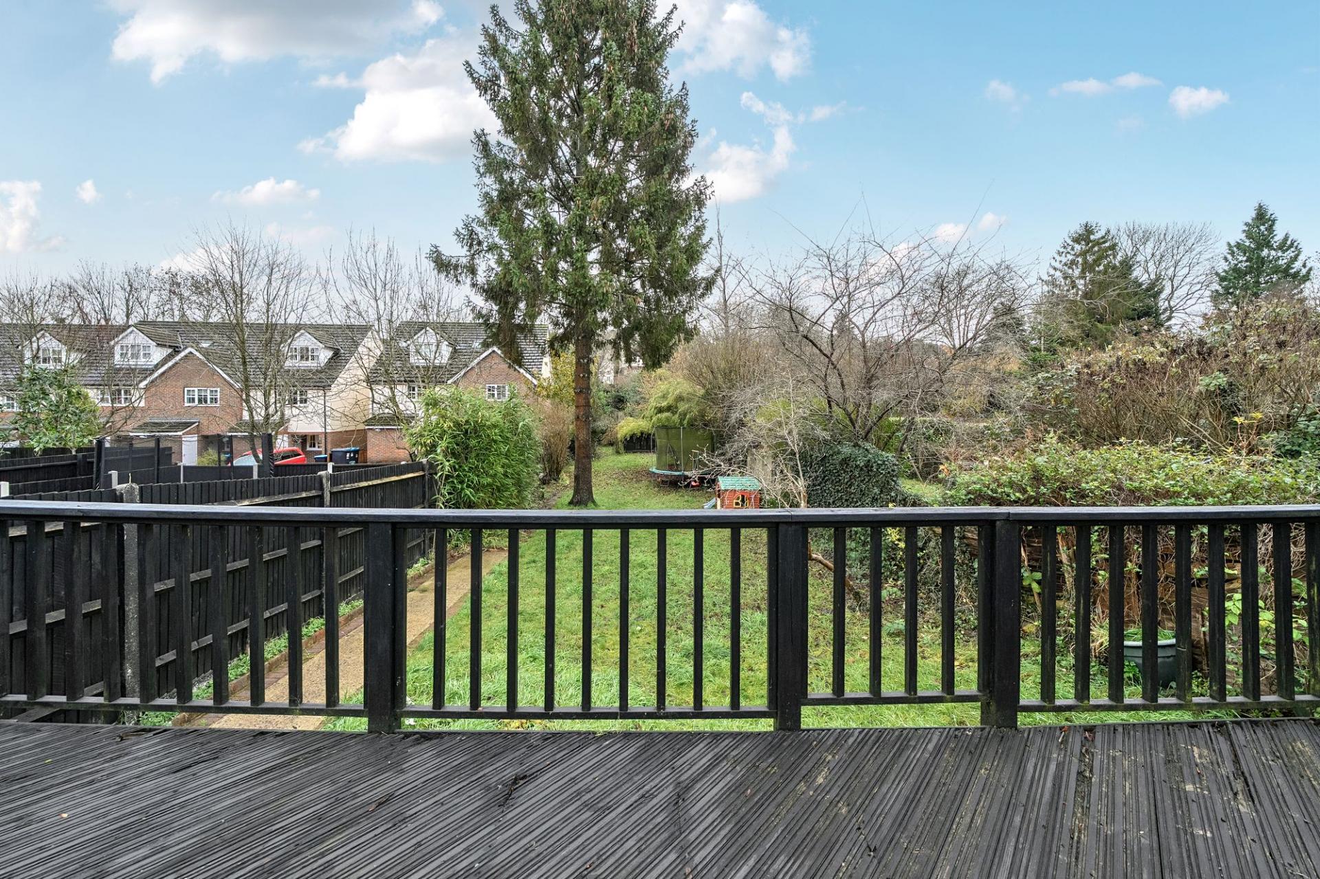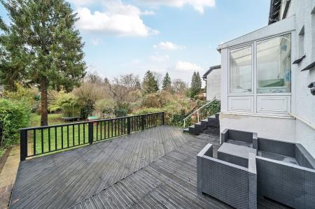 - Large garden, mainly laid to lawn with mature borders, and substantial deck area ideal for entertaining