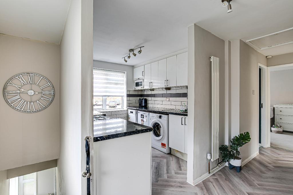 The property is thoughtfully designed with bright and neutral tones, creating a sense of space and tranquility in every room from the lovely bright lounge with double aspect windows to the superb kitchen which boasts a range of modern units, ample work surface areas and modern flooring. The replaced modern flooring flows through to the spacious hallway, enhancing the overall asthetic of the property and allows for ease of maintenance. There is a also a re-fitted modern bathroom with sleek fixtures and fittings adding a luxurious touch, offering both practicality and style. There are two generously sized double bedrooms, with each bedroom providing ample space, making this maisonette perfect for comfortable living or hosting guests.