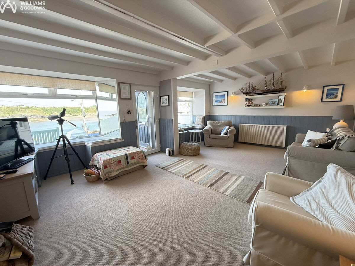 Nestled at the end of a picturesque row of cottages, this delightful extended home offers an almost unparalleled vantage point over the waters of Cemaes Bay. With its elevated position, the property boasts breathtaking views of the side beach, the expansive bay, and the dramatic rock face across the water. This cottage is a true gem, providing generous living accommodation that seamlessly blends comfort with coastal charm. The well-maintained interior is a testament to its 'turn key' status, inviting you to settle in and start enjoying the tranquil seaside lifestyle immediately. The elevated garden at the rear offers a private retreat, while the front patio is the perfect spot to soak in the stunning vistas and savour the fresh sea breeze.
