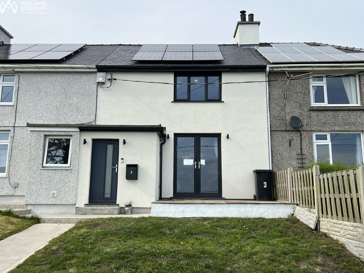 Charming end terrace 3-bed home in Llangaffo with stunning Snowdonia views. Features a balcony roof terrace, countryside...