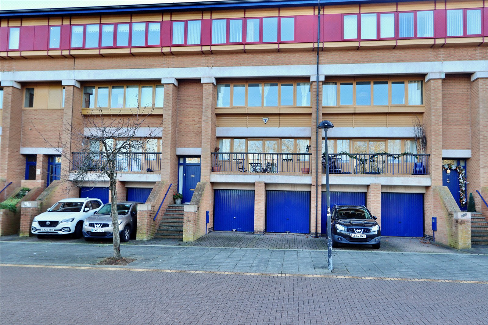 The property itself is comprises over three generous floors. The ground floor offers access to the integral garage, guest cloakroom, dining room and kitchen - there are sliding doors leading to the well maintained rear garden, which then leads onto the stunning communal gardens to the rear. The first floor provides access to the third bedrooms and a dual aspect living room with balconies to the both sides. The second floor then offers a further two double bedrooms and a four piece family bathroom. Externally there is a driveway ahead of the garage.