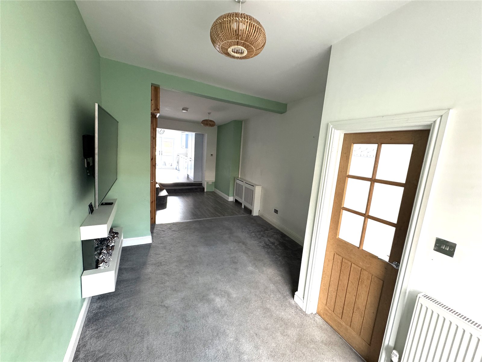 Sitting Area with attractive 'live flame' effect electric fire, under stairs storage, bench seating to bay window to front.
