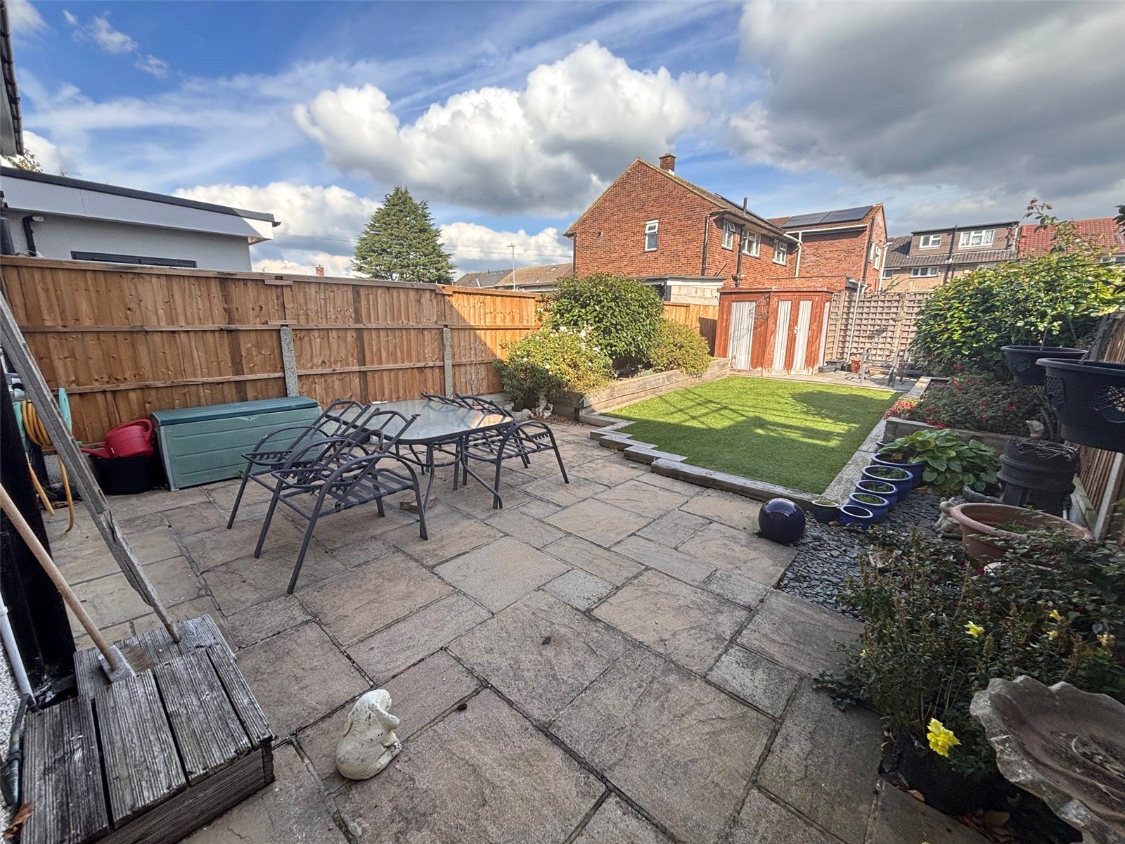 Step inside to a bright and spacious lounge – ideal for cosy evenings in – leading through to a stylish fitted kitchen and dining area where family meals and weekend gatherings come to life. French doors open out to a private rear garden, providing the perfect space for summer barbecues, playtime, or simply relaxing in the sunshine.
