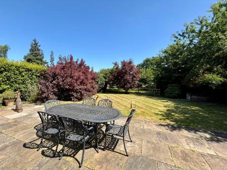 To the rear, the garden is a true delight - featuring a level lawn, vibrant flower beds, and mature trees that create a lovely, private retreat. A spacious patio area is perfect for al fresco dining, entertaining, or simply relaxing in the sunshine, adjacent to the property.