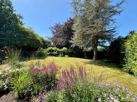 OUTSIDE The property is surrounded by stunning outdoor spaces, offering a seamless blend of beauty and functionality. The front garden welcomes you with a neatly maintained lawn and mature hedges, providing privacy and enhancing the home's charming curb appeal.