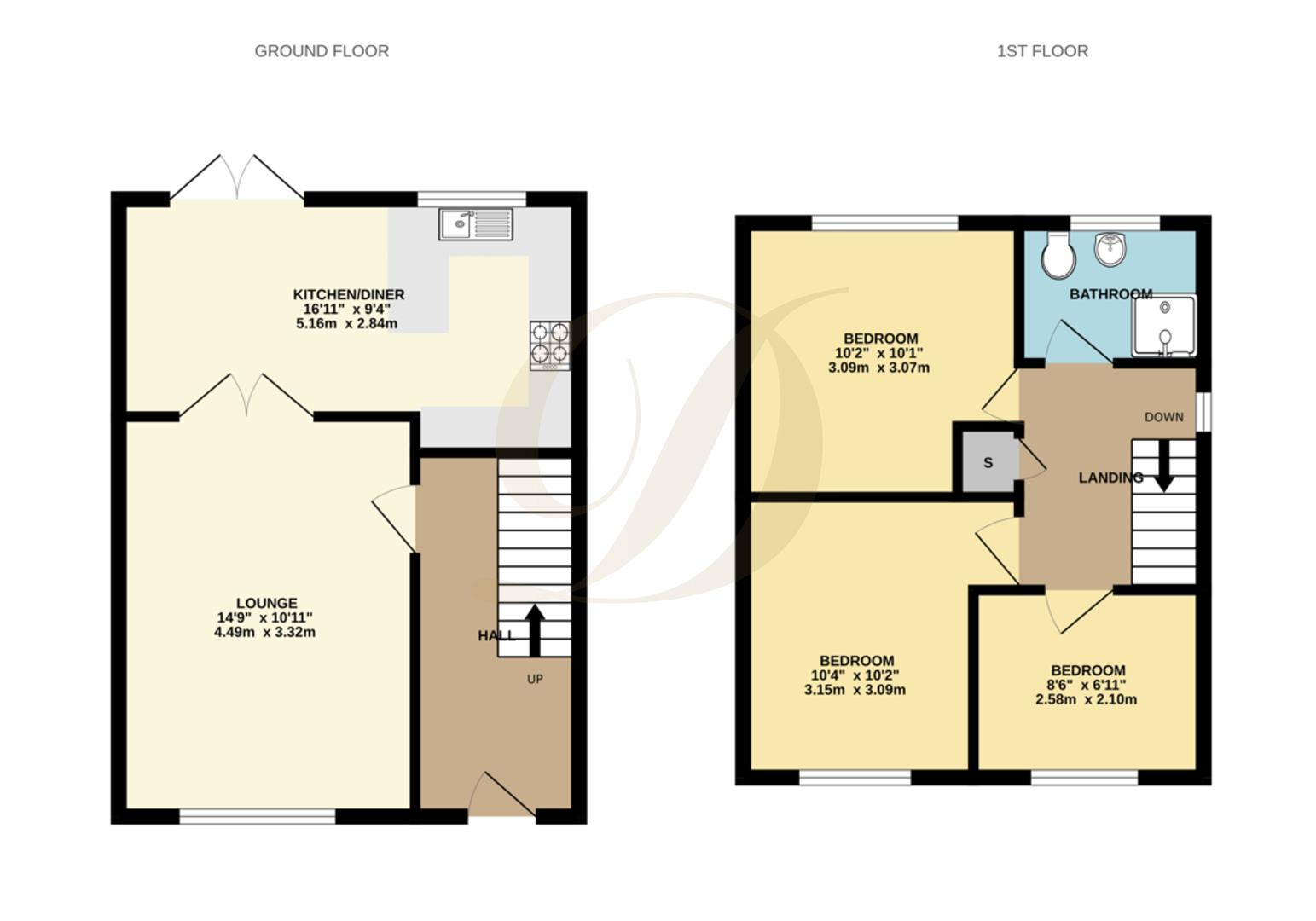 To the first floor, the landing leads to three well-proportioned bedrooms, two of which are generous doubles, providing comfortable living space for families or those needing a home office. A modern wet room completes the first-floor accommodation.