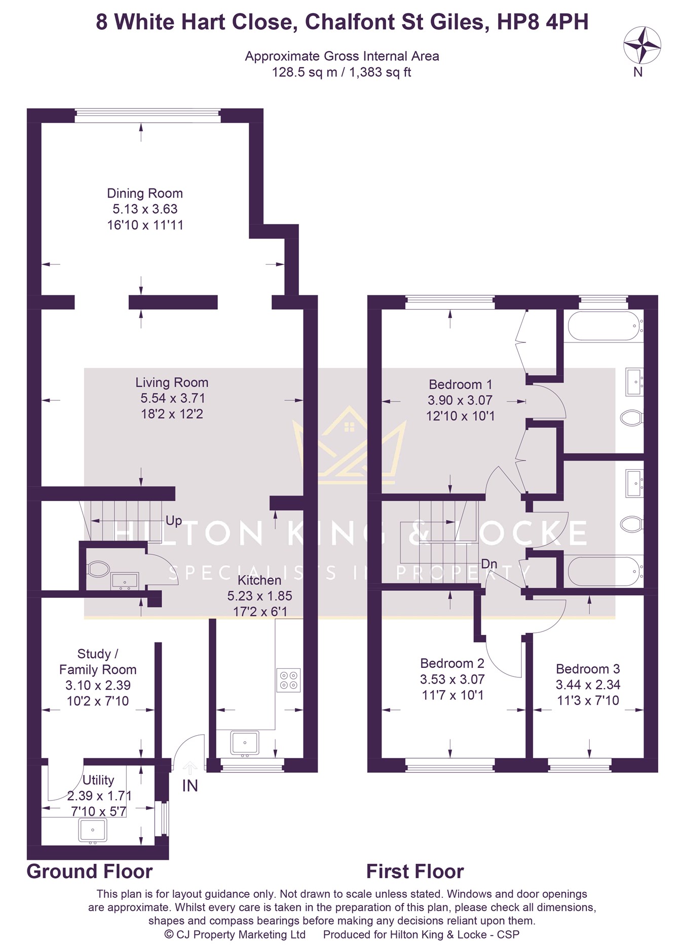Approx. 1,383 sq ft (128.5 sq m) of internal space