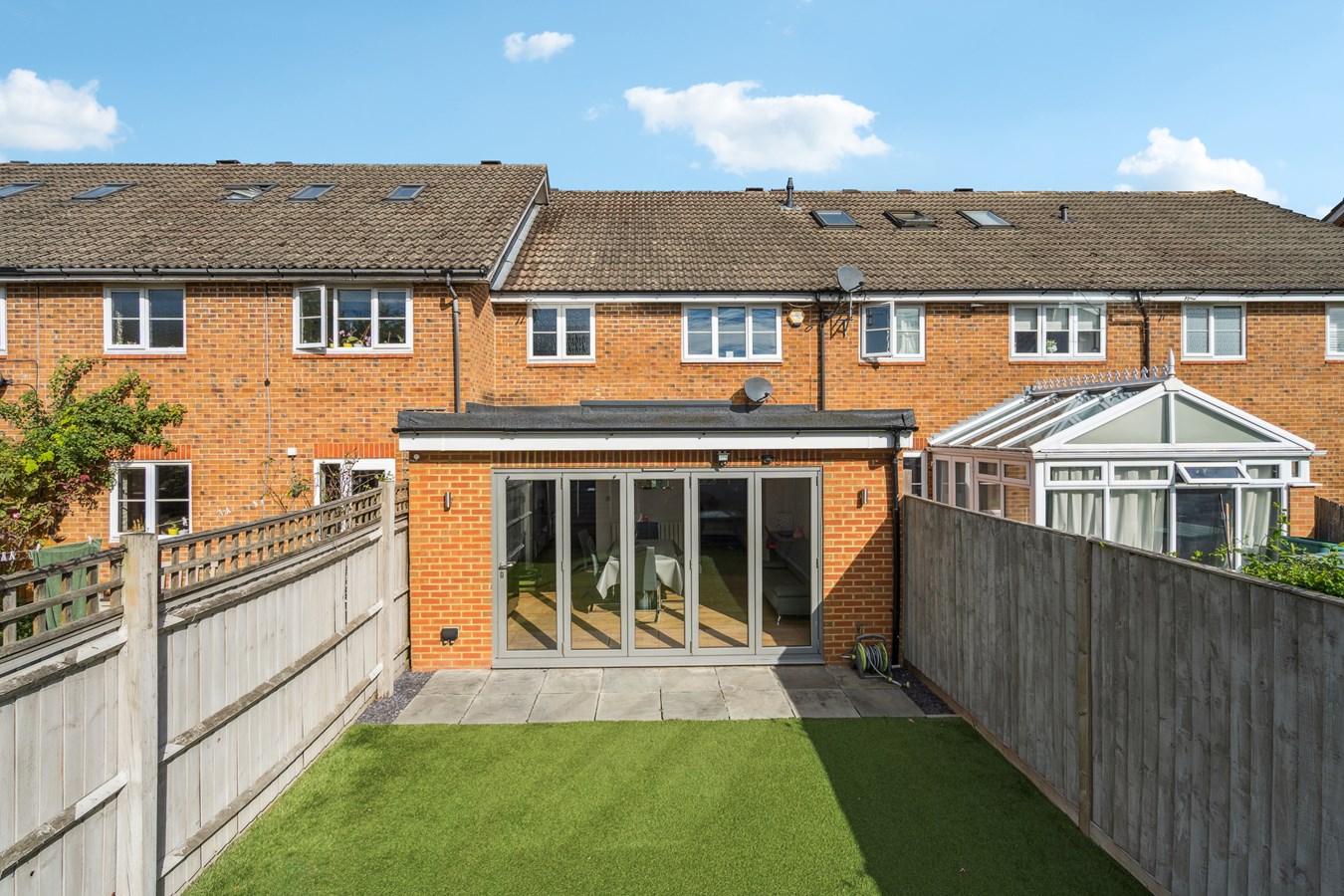 Extended rear dining area with bifold doors to the garden