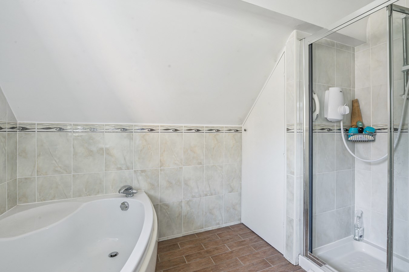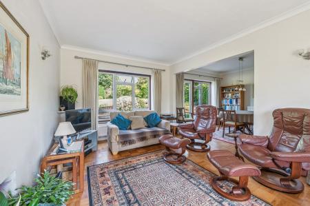 Externally, the scale of the plot truly comes into its own. The rear garden, mainly laid to lawn with mature trees, shrubs, and a generous patio area, offers excellent privacy and space for entertaining or future development. A separate side garden, also laid to lawn and bordered with planting, further enhances the footprint of the plot. The expansive front garden includes a lawn and a driveway with parking for several vehicles, reinforcing the generous proportions of the overall site.
