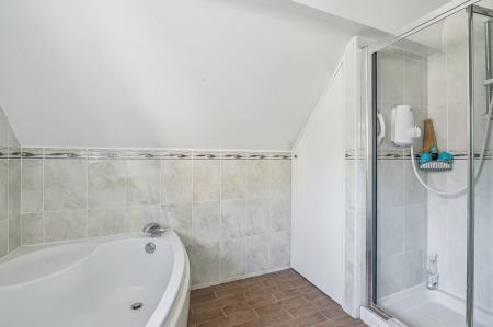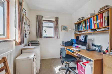 Upstairs, the landing is bright and airy, featuring a front aspect window and a second cloakroom/WC. The master bedroom and two further bedrooms overlook the rear garden, while the fourth bedroom (currently used as a home office) benefits from dual aspect windows. A modern family bathroom completes the first floor accommodation.
