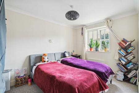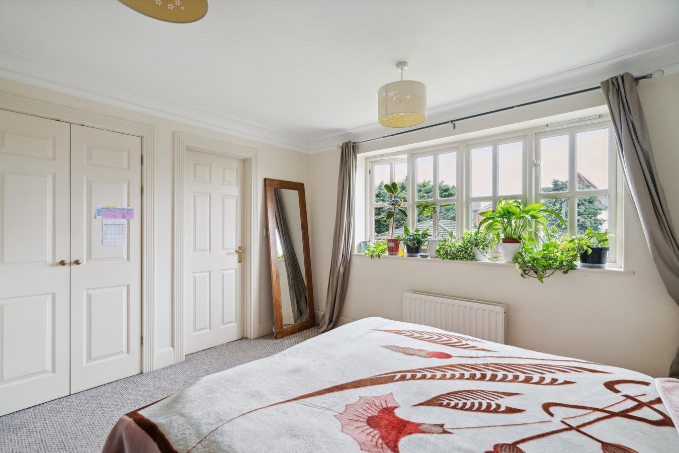 Upstairs, the home continues to cater beautifully to family needs. The principal bedroom provides a peaceful retreat, overlooking the garden and benefiting from fitted wardrobes and a private en-suite shower room. Two further well-proportioned bedrooms offer flexible accommodation for children of all ages, guests, or additional workspace if required. A modern family bathroom completes the upper floor, designed to serve the household with both comfort and convenience.