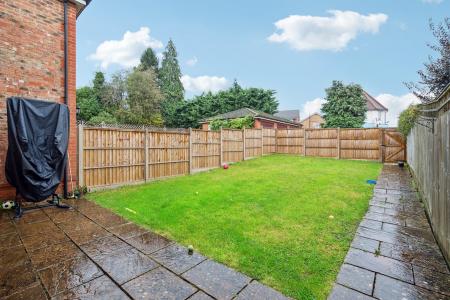 Outside, the property offers safe and enjoyable outdoor space for the whole family. The front garden creates attractive kerb appeal, while the private rear garden is mainly laid to lawn, offering plenty of room for children to play, pets to roam, or for hosting family gatherings. A patio area provides the perfect spot for outdoor dining, while rear access leads to the garage and parking area, adding further practicality.