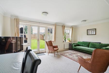 To the rear of the home, the generously sized living room forms the heart of the property. Filled with natural light and offering ample space for family gatherings, relaxing evenings and entertaining friends, the room opens directly onto the rear garden through double doors. This seamless connection between indoor and outdoor living creates a wonderful setting for summer barbecues, children’s play, and relaxed family time.