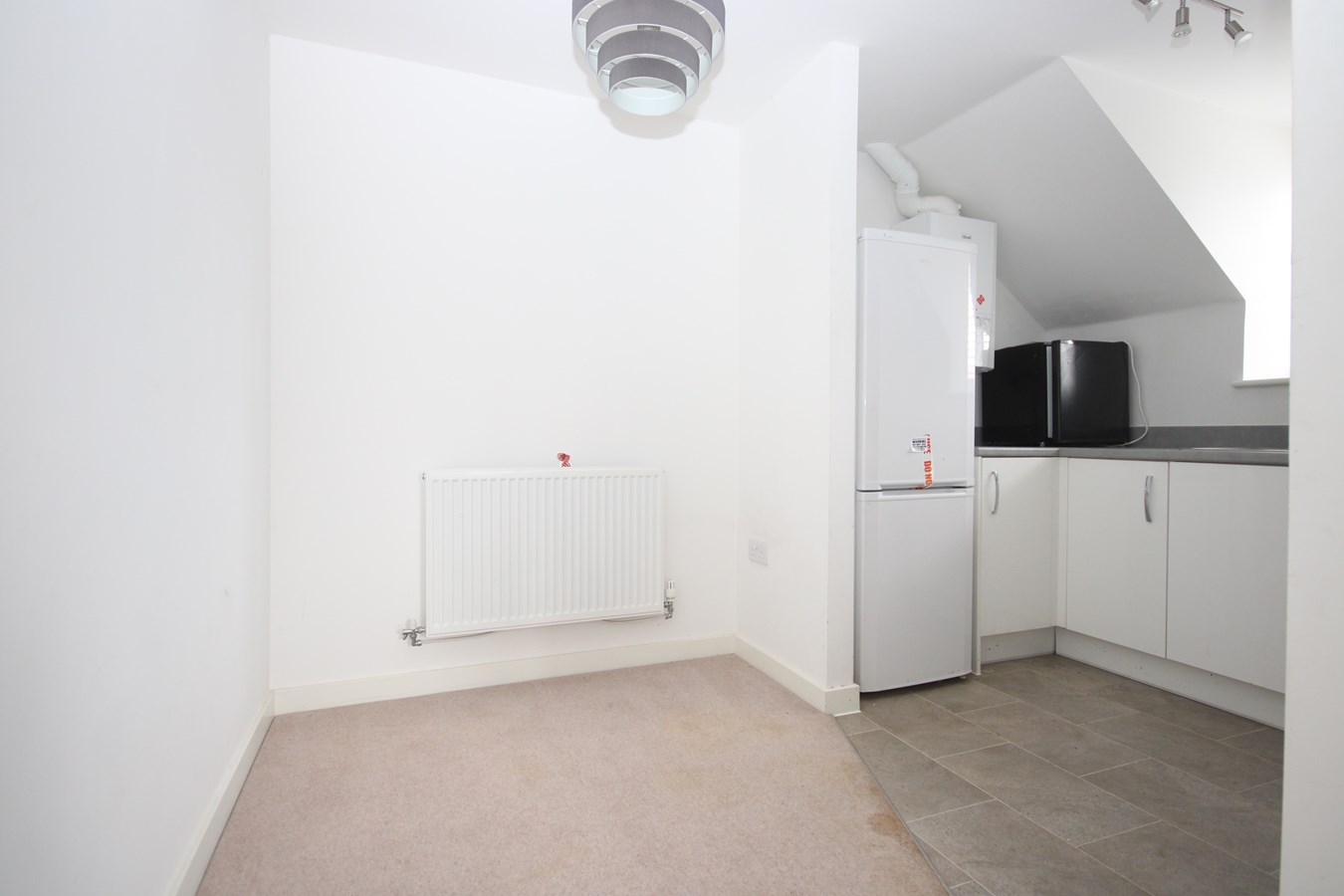 There is a communal entrance hall accessed by the private entry phone system. Once entering the property the generous hallway has ample space for storage or a study area. The bright and spacious living/dining room has a pretty outlook across the development and provides space for sofas plus table and chairs. An opening leads through to the fitted kitchen which has an electric oven, gas hob and extractor hood over.