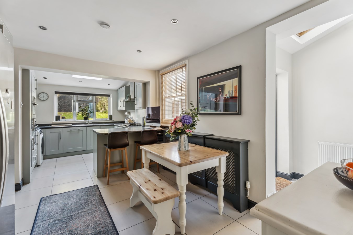 Upon entering the property there is a spacious hallway with ground floor cloakroom/wc. The spacious through reception room measures more than 29 ft (8.92 m) and has lots of space for a dining area, plus sitting area with feature fireplace and bay window enjoying views over the Village. The kitchen/breakfast room occupies the rear section of the house and has an extensive range of fitted units. A skylight window and rear window provides an abundance of light to the room.