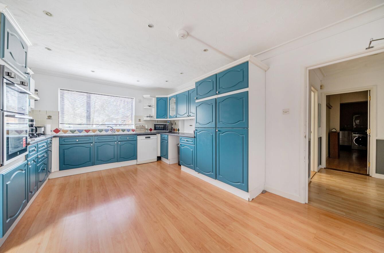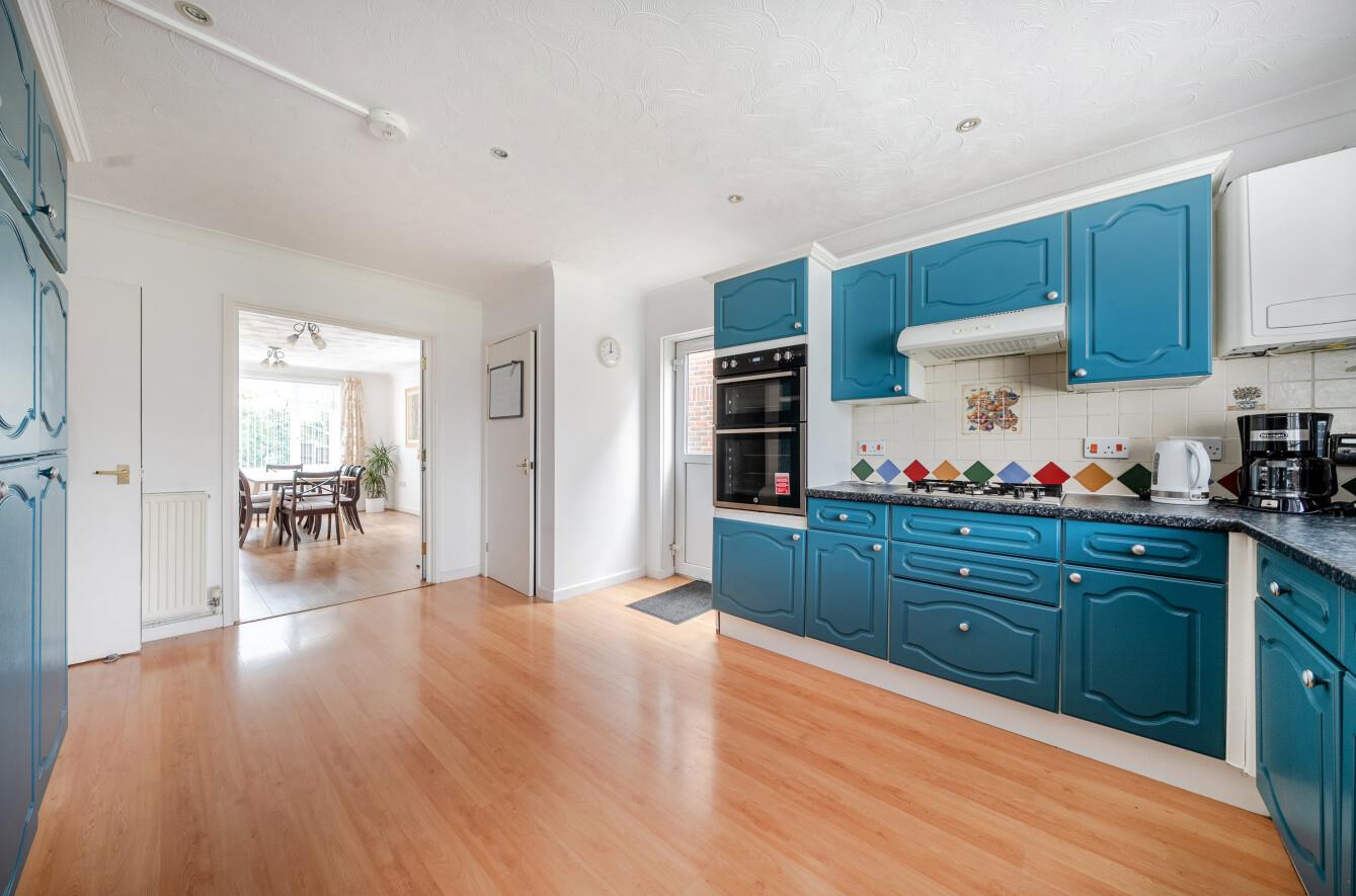 Kitchen/Breakfast Room: - 16'4" x 11'10" (4.98m x 3.61m) Range of units, electric double oven, gas hob with extractor hood over, space and plumbing for appliances, integrated fridge and freezer, boiler, built in larder cupboard, door to outside.