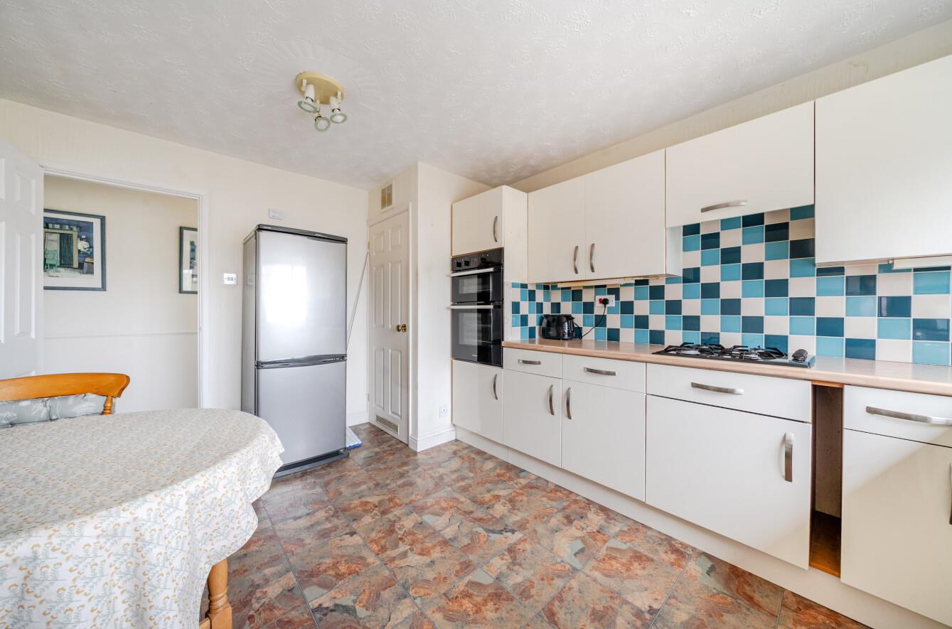 Kitchen/Dining Room: - 13'10" x 10'3" (4.21m x 3.12m) Range of units including integrated electric double oven, gas cooker with extractor fan over, sink and space for a washing machine and fridge/freezer. Cupboard with boiler and storage.