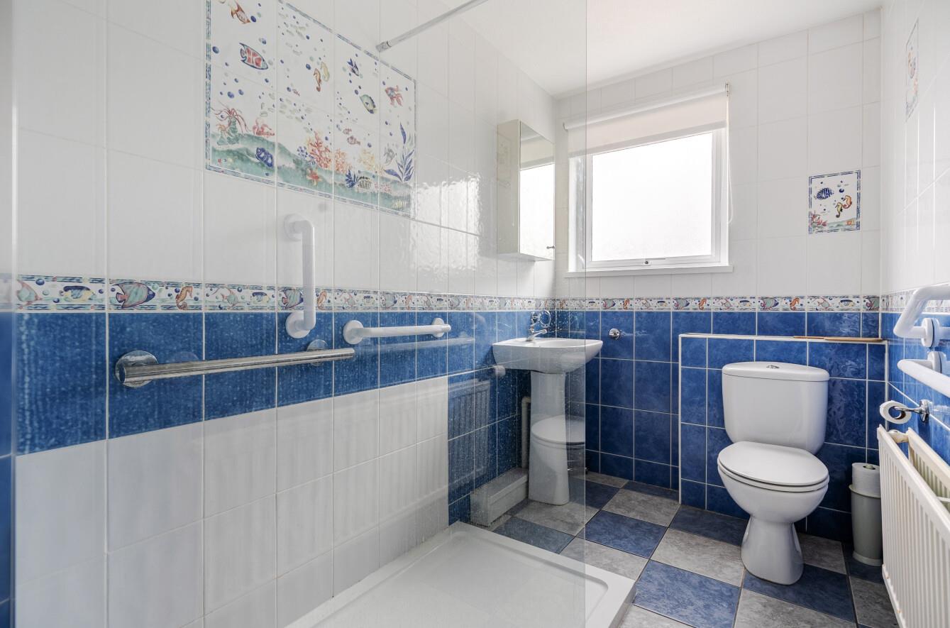 Shower Room: - Walk in shower with glass screen, wash basin with the cupboard over and WC.