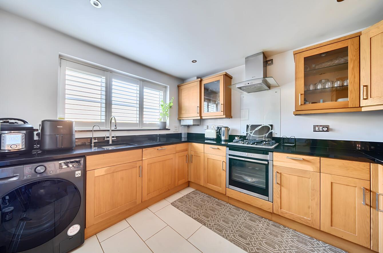 Kitchen: - 10'8" x 9'3" (3.26m x 2.81m) Quartz worktops, range of units including integrated fridge/freezer, dishwasher, gas hob and electric oven with extractor hood over and space for a washing machine.