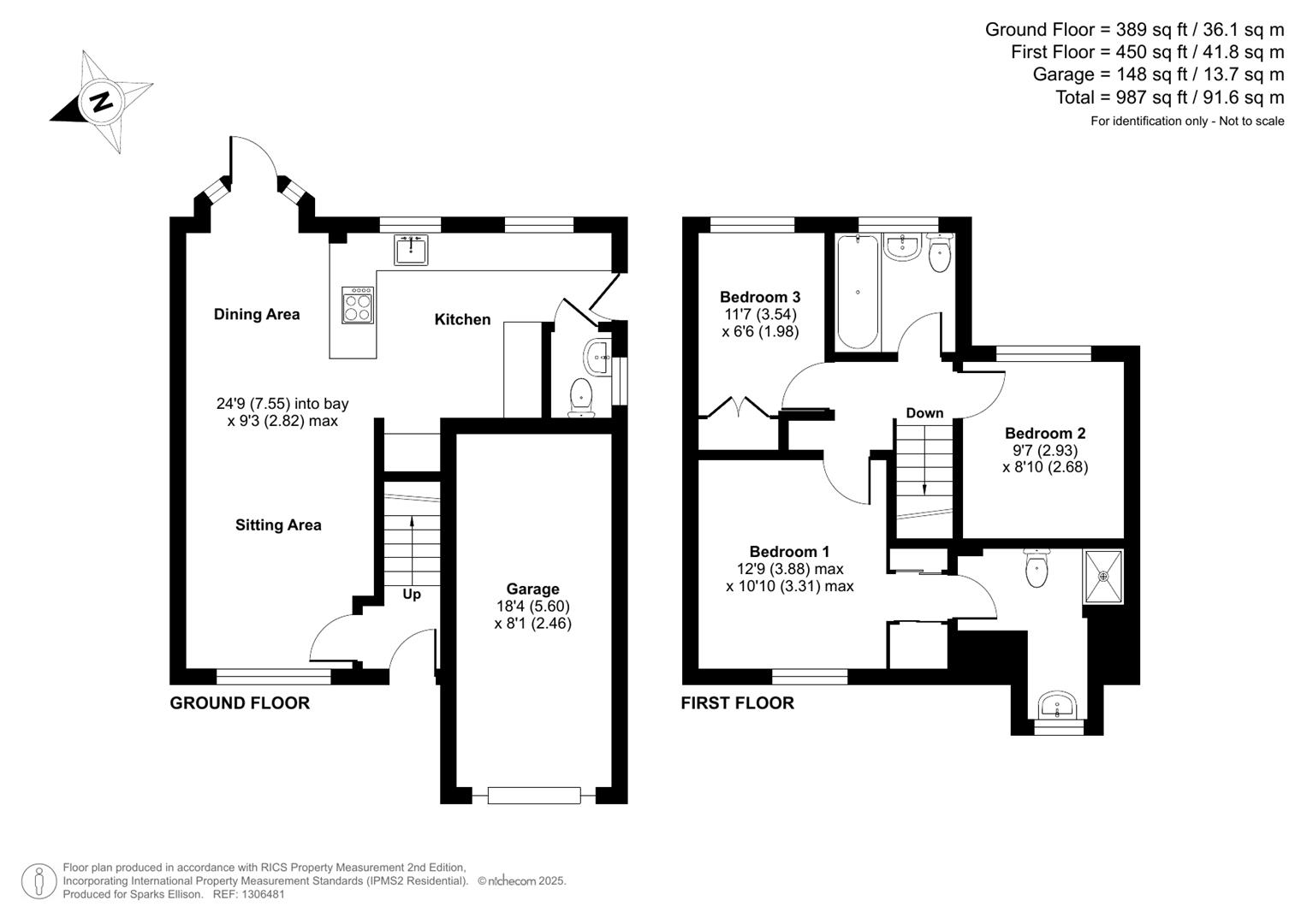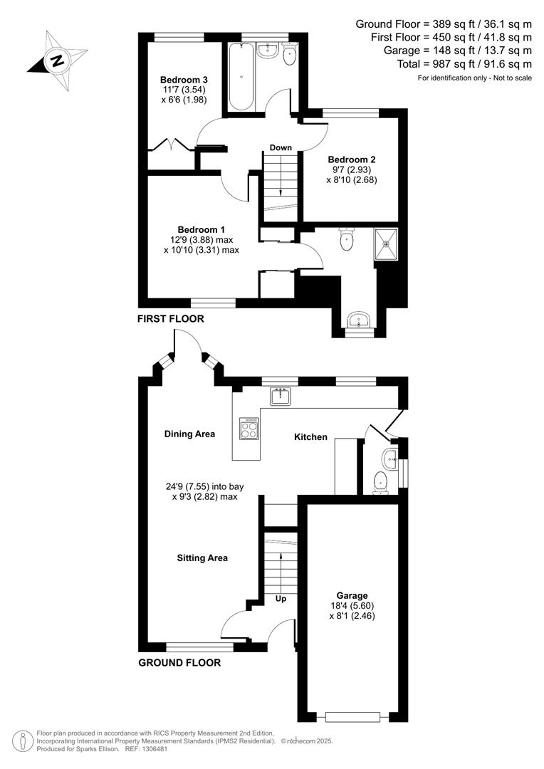 Approximate Area: - 987sqft/91.6sqm (Including garage)