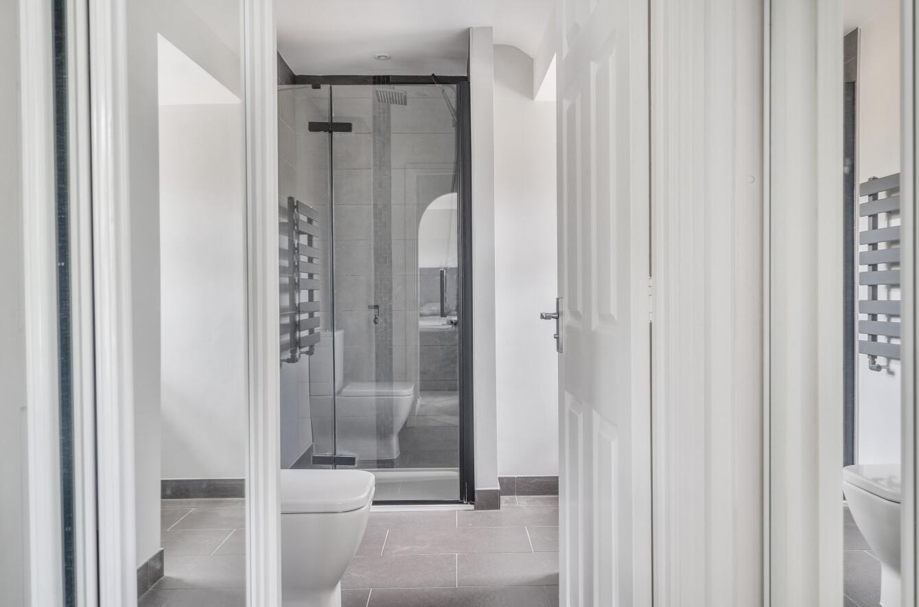 En-Suite: - Re-fitted modern suite comprising shower cubicle with glazed screen, wash basin with cupboard under, WC, tiled floor.