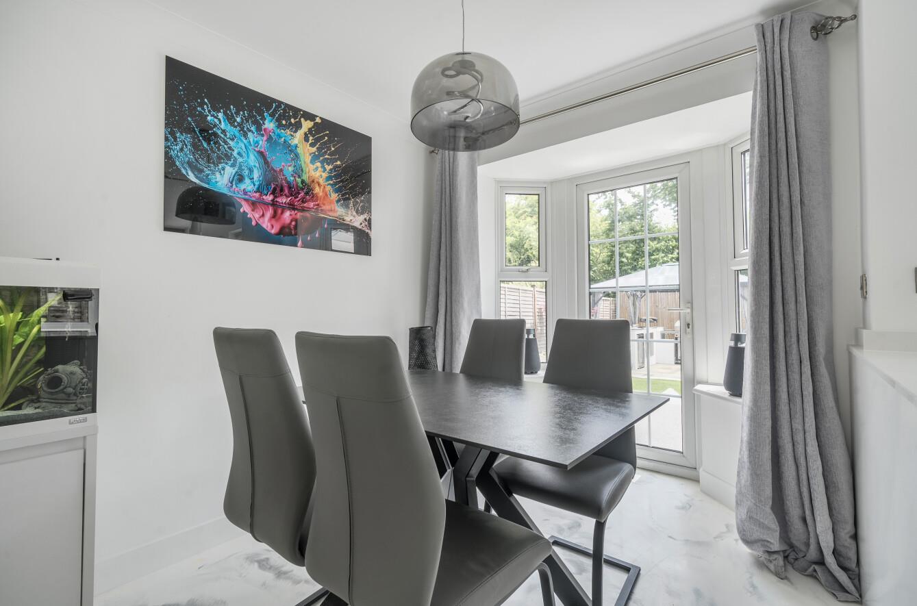 Open Plan Sitting/Kitchen/Dining - 24'9" x 9'3" (7.55m x 2.82m) The sitting area provides space for sofas and chairs with windows shutter to the front window. Open plan design to a dining area with space for table and chairs and bay window and door to rear garden. This leads through to the kitchen which has been comprehensively re-fitted with a range of Wren units providing grey gloss handleless cupboards with Quartz worktops over and LED lighting. Induction hob with built in extractor, electric oven and microwave, integrated fridge freezer, dishwasher and washing machine, door to outside.