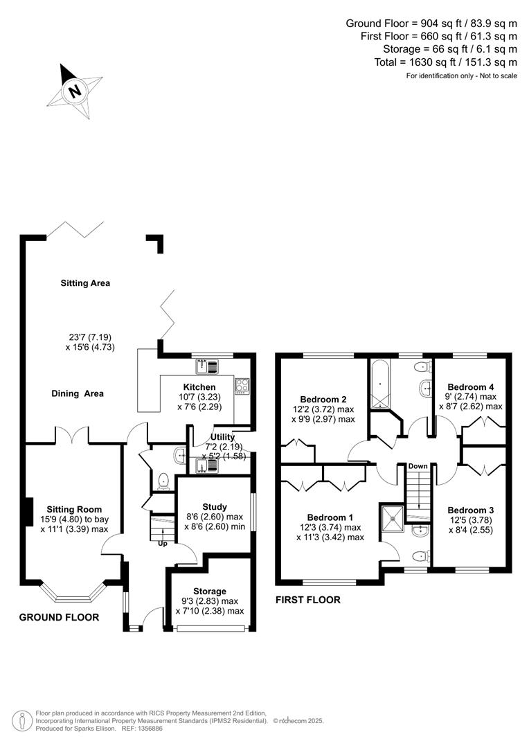 Approximate Area: - 1630sqft/151.3sqm (Including storage)