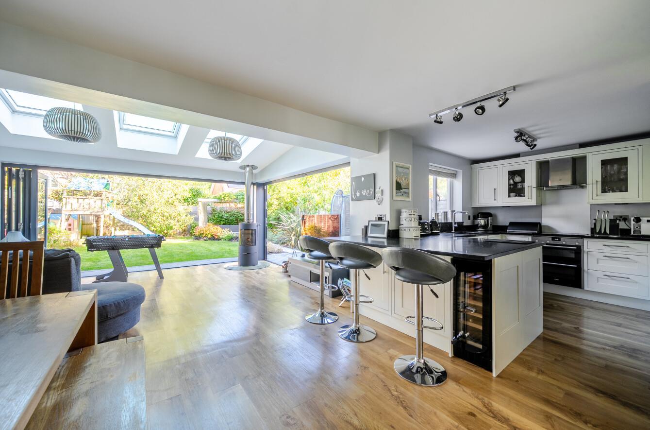 Dining/Family Room: - 23'7" x 15'6" (7.19m x 4.73) The dining area has space for table and chairs. The sitting area provides two sets of bi-fold doors to rear garden and three roof light windows creating a great deal of light, feature log burner, under floor heating.
