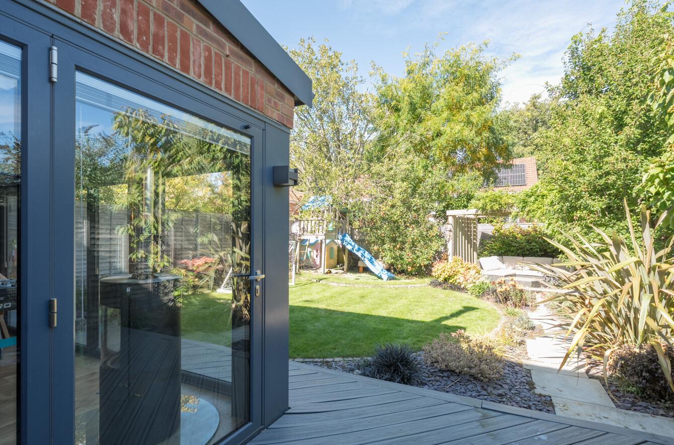 Located in the highly desirable Knightwood Park, Littlefield Crescent presents a magnificent detached family home that is sure to impress. This splendid property boasts four generous bedrooms, each equipped with built-in wardrobes, ensuring ample storage for all your needs. The main bedroom features a en-suite, while the stunning re-fitted bathroom serves the remaining bedrooms, providing a perfect blend of comfort and style. The heart of this home is undoubtedly the remarkable open-plan kitchen, dining, and living space. This area is designed for modern family living, featuring two sets of bi-fold doors that seamlessly connect the indoors with the outdoor space, allowing natural light to flood the room. A charming log burner adds a touch of warmth and character, making it an inviting space for both entertaining and relaxation. In addition to the impressive living area, the property offers a spacious sitting room, and a dedicated study, ideal for those who work from home. Situated in one of the most sought-after parts of Knightwood Park, residents can enjoy picturesque woodland walks right on their doorstep. Local amenities, including shops in Pilgrims Close and reputable schools such as Thornden, are conveniently close, making this location perfect for families. This exceptional home combines modern living with a tranquil setting, making it an ideal choice for those seeking a family-friendly environment in a prime location. Don't miss the opportunity to make this stunning property your own.