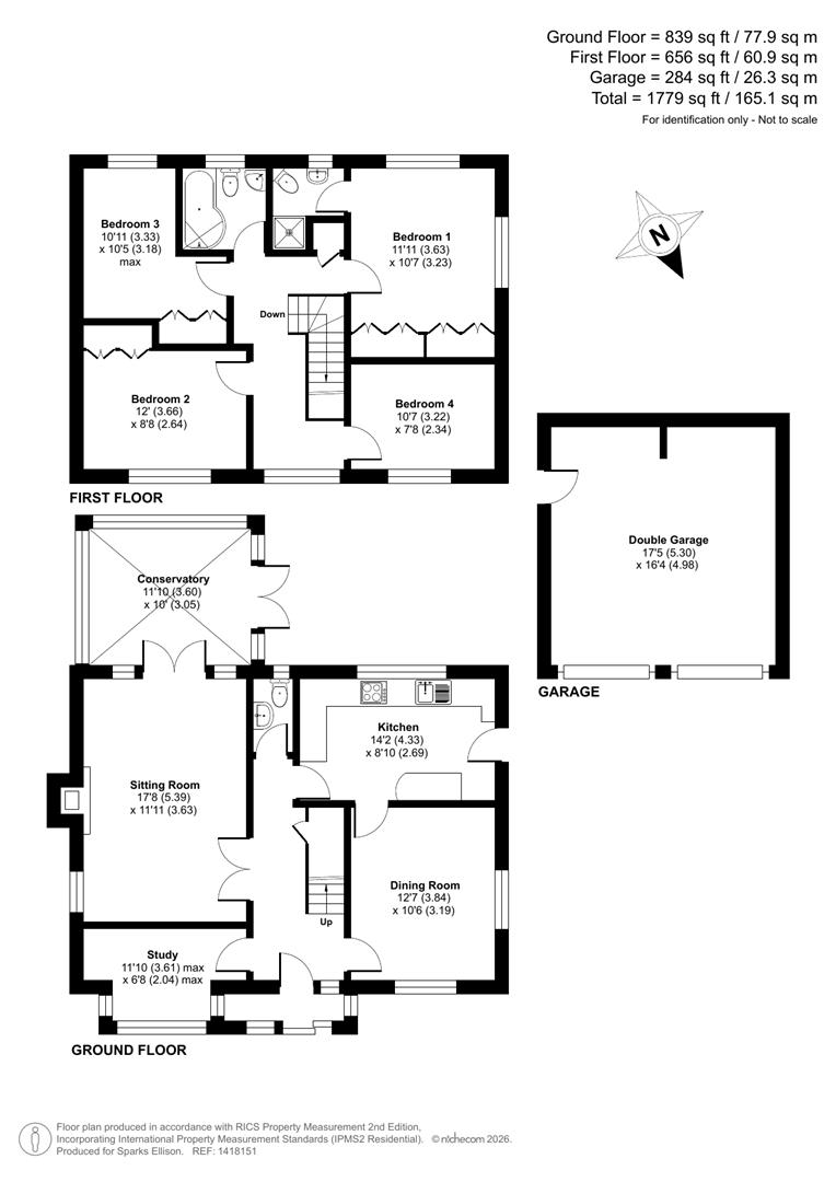 Approximate Area: - 1779 sq ft / 165.1 sq m