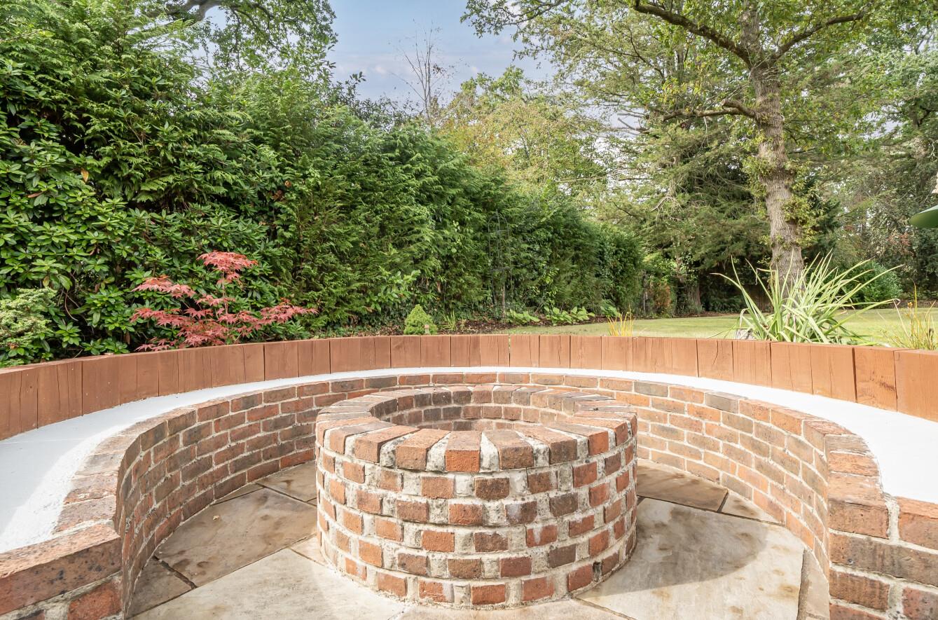 Rear Garden: - Measures approximately 144' x 65' (44m x 19.9m) Adjoining the house is an extensive paved terrace providing an outdoor entertaining area feating a circular fire pit and seating, space for further table and chairs, planted borders retained by sleepers, this leads onto a large level lawn enclosed by hedging and fencing.