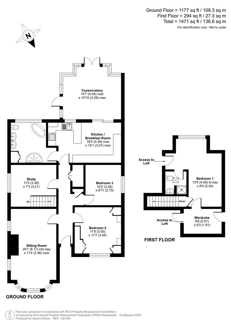 Bedroom 1: - 13'5" x 8'4" (4.08m x 2.54m) Door to walk in wardrobe with access to loft space.