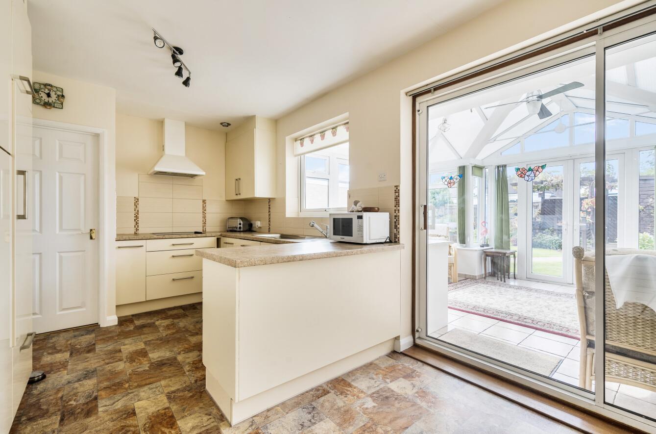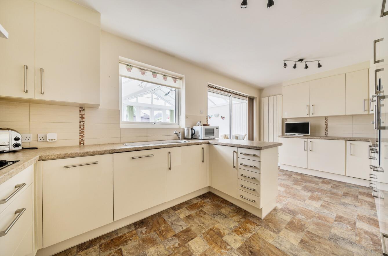 Kitchen/Breakfast Room: - 18'4" x 10'1" (5.59m x 3.07m) Re-fitted comprehensive range of cream gloss units, electric double oven, electric hob with extractor hood over, integrated dishwasher and fridge, patio doors to Conservatory.