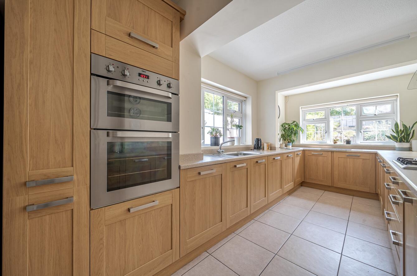 Kitchen/Breakfast Room: - 24'7" x 8' (7.50m x 2.43m) Extended and comprehensively fitted kitchen with a range of shaker style units, electric double oven, gas hob with extractor hood over, space for upright fridge/freezer, tiled floor, space for table and chairs, under stairs cupboard.