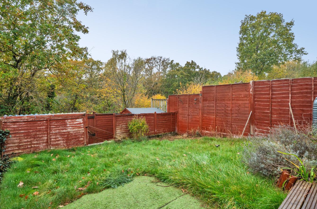 Rear Garden: - Measures approximately 26' x 19' and comprises area laid to lawn, area laid to timber deck, steps to further area laid to artificial lawn with covered area and garden shed, gate providing rear access.